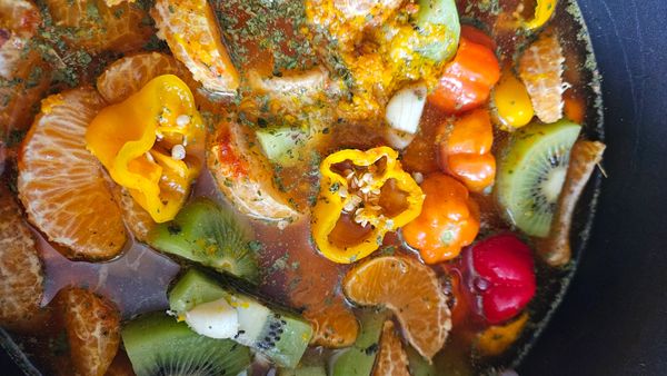 This sauce flows with sweet and tangy citrus flavors of mandarin orange and kiwi. It is quickly followed by a wave of habanero heat. It goes great on chicken, seafood, pork, eggs, and even salads but will not disappoint with any dish.